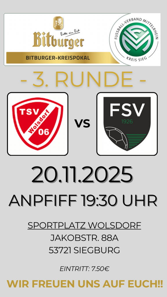 Kreispokal, 3. Runde: TSV Wolsdorf ./. FSV
